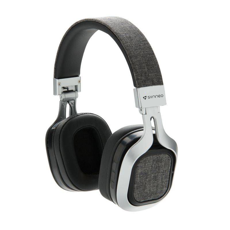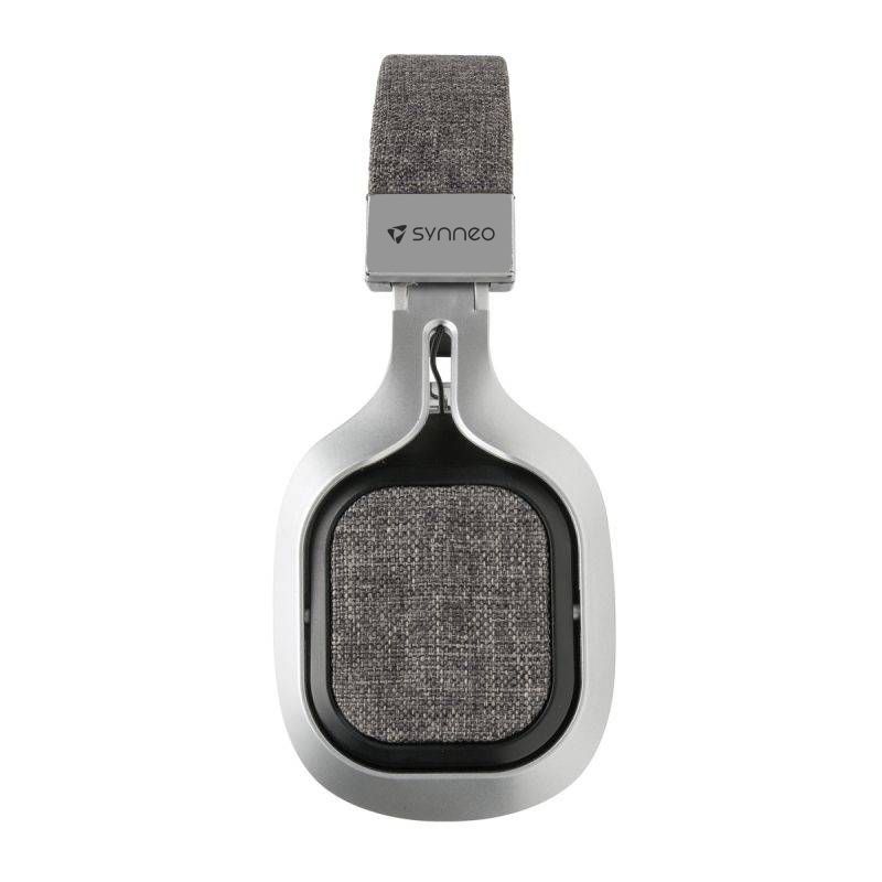 Casque audio pliable avec finition tissu. Batterie 200 Ah intégrée pour profiter de 6 à 7h d'écoute. Portée jusqu'à 10 mètres. Port confortable grâce aux coussinets en PU. Câble micro USB inclus.